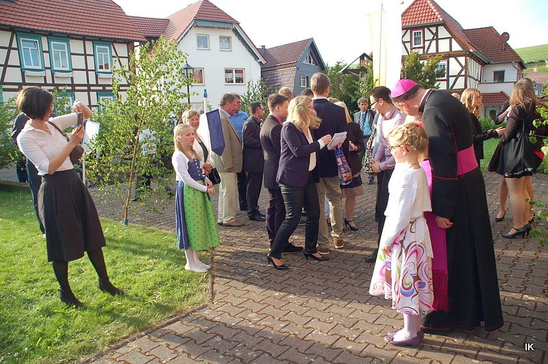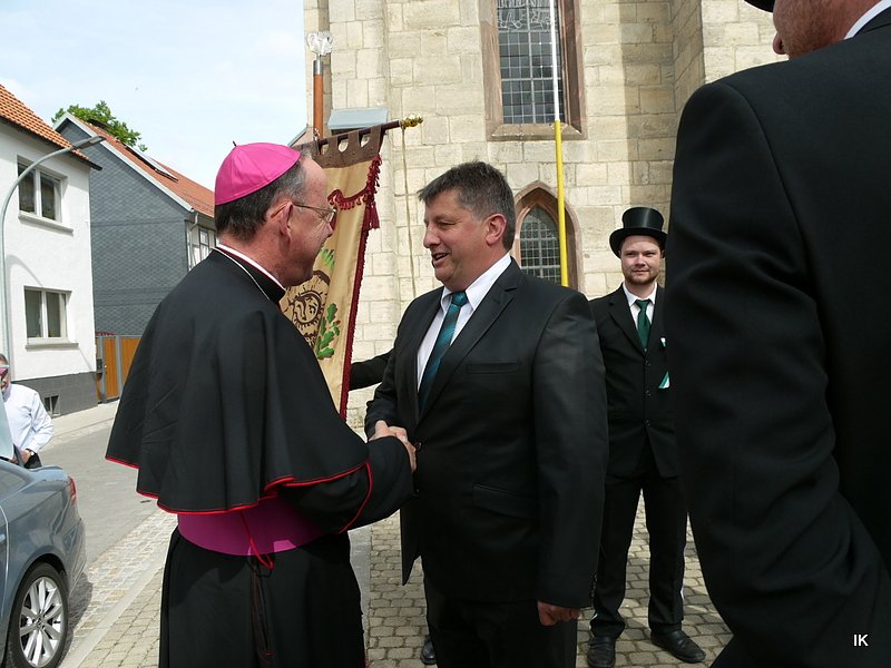Wie es Brauch ist in Beuren und Wingerode, wird der Bischof am Ortseingang abgeholt und zur Kirche geleitet. In diesem Jahr war der Weg ein bisschen weiter, denn der Bischof wurde zwar vor der Kirche in Beuren aufs herzlichste begrüßt, aber die Firmung selbst war in der Kirche in Wingerode. Doch die Beurschen hatten eine gute Idee.