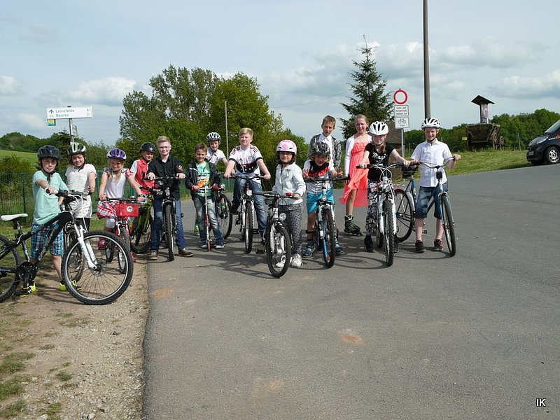 Mit Sondergenehmigung, der Feuerwehr voran und von vielen radfahrenden Kindern und auch Erwachsenen fuhr das Bischofs-Auto dann die sogenannte KAP-Straße entlang und der Bischof sah wieder einmal mehr, wie schön unser Eichsfeld ist. Am Ortsrand von Wingerode warteten die Kinder aus Wingerode mit den Rädern, um den Bischof zu eskortieren. Im Konvoi durch die sehr festlich geschmückte Straße von Wingerode ging es dann zur Kirche, wo der Bischof herzlich vom Kindergarten musikalisch begrüßt wurde.