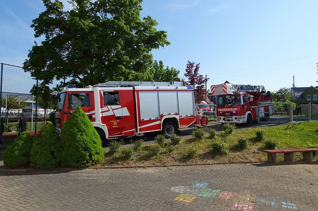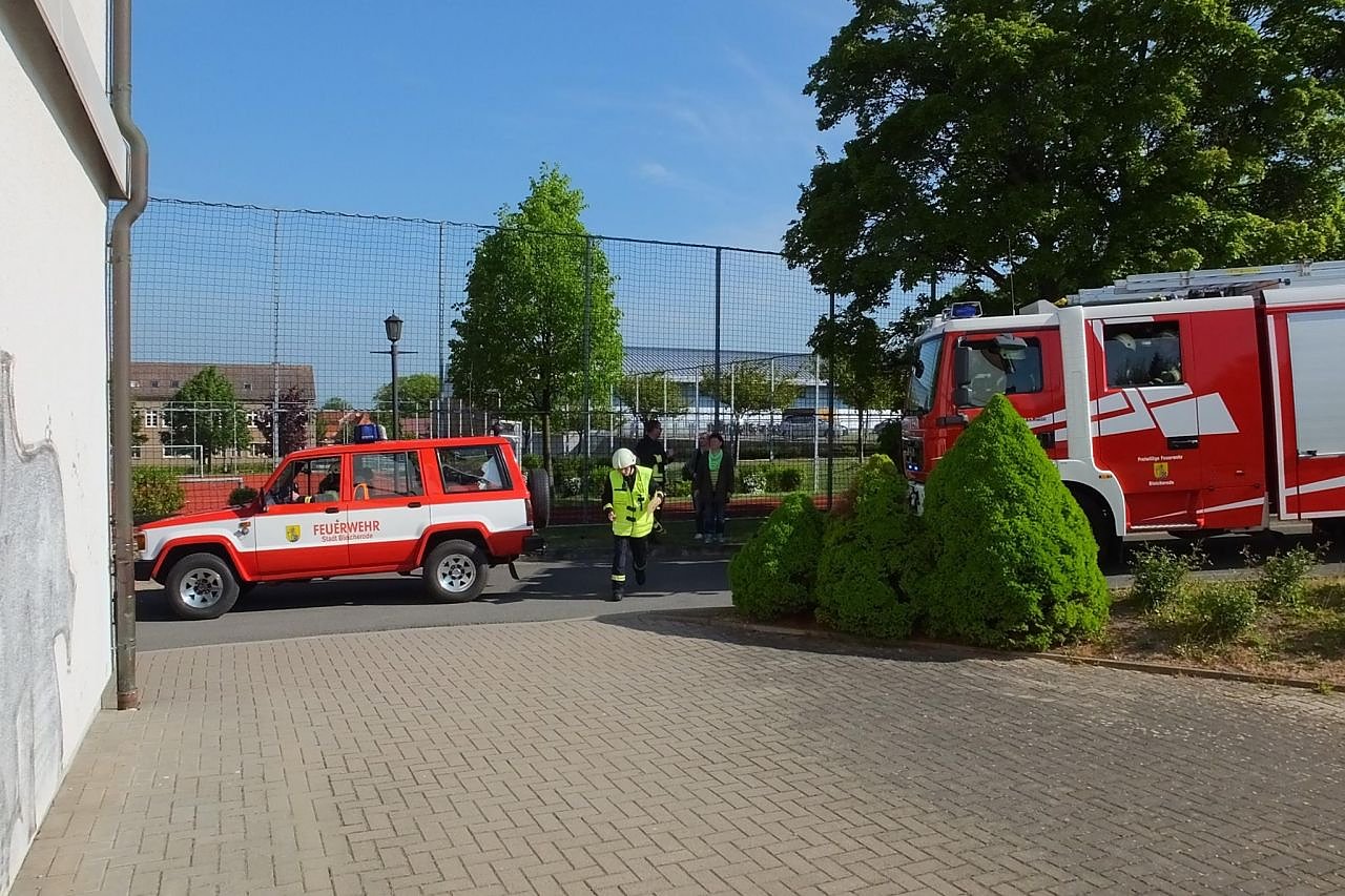 Das Feuer konnte schnell gelöscht, die Lehrerin leicht verletzt dem Rettungsdienst übergeben werden. Ebenso schnell war klar: Es handelte sich um eine Übung, während der das Zusammenwirken der Einsatzkräfte untereinander und mit der Schulleitung geprobt wurde.