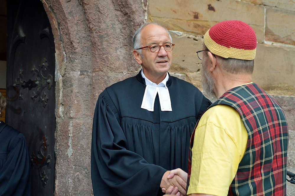 Das bedeutet immer wieder umfangreiche Vorbereitung, auch wenn schon eine gewisse Erfahrung vorliegt und man zuverlässige Partner über die Jahre gewonnen hat. Nur auf den Wettergott hat man keinen Einfluß! Da ist das Finden eines Predigers für den Läufergottesdienst noch eine der leichtesten Übungen, besonders wenn dieser dann auch am Lauf teilnimmt. Wie schon 2012 sagte Oberkirchenrat Christhardt Wagner nun auch für den 6. Orgellauf zu (er ist Vertreter der Evangelischen Kirche Mitteldeutschlands beim Thüringer Landtag). Das dann die Predigt auch in irgendeiner Weise auf das Ereignis Bezug nimmt, wird erwartet, ist aber nicht selbstverständlich. Man kann natürlich einen für diesen Anlaß günstigen Bibeltext wählen und ihn auslegen, aber interessanter ist es schon, wenn man den für den jeweiligen Sonntag vorgeschriebenen Text auslegt. So hielt es auch Oberkirchenrat Wagner und führte aus: