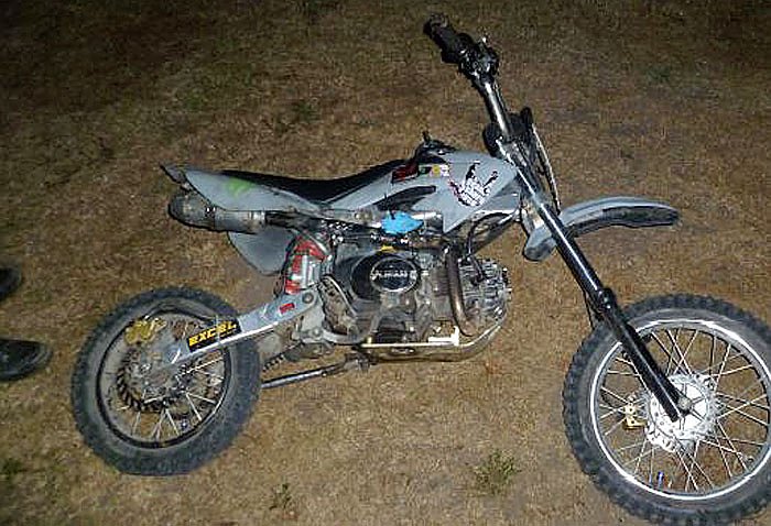 Bei dem Fahrzeug handelt es sich um ein Dirt Bike der Marke LIFAN mit 125 ccm Hubraum. Es ist grau und hat eine schwarze Sitzbank.