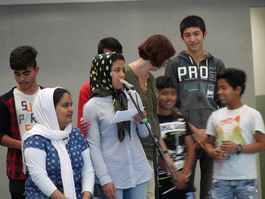 Migrantenkinder aus Albanien stellten sich mit einem traditionellen Tanz vor. Die Tanzgruppe der Montessorischule in Beuren führte den ungarischen Tanz Tanz für das Kind auf und hatte gleich einen kleinen Fan. Die Sprachschule Am Förderzentrum sang das Lied Vor dem Schulhof, Yusuf Yildrin aus Worbis überzeugte mit traditioneller Musik aus seinem Heimatland, der Türkei. Viel Beifall erhielten Malika Sambulatova und ihr Partner für den tschetschenischen Hochzeitstanzs in Original-Kostümen und im Anschluss die Gruppe Xigubo mit ihren afrikanischen Trommeln.