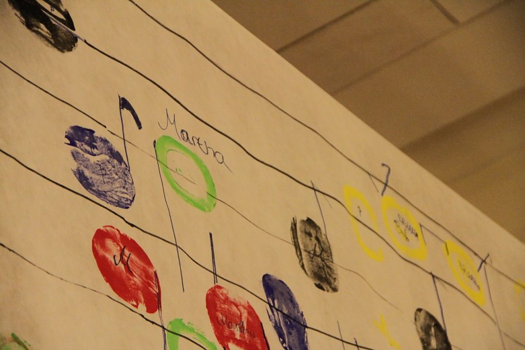 Highlight und Finale war die Aktion "Ton in Ton". Mit viel Farbe konnten die Besucher Noten auf ein Extra langes Stück Leinwand bannen, Noten die am Ende ein eigenes Lied ergaben, das wiederrum von der Musikschule vertont werden konnte.