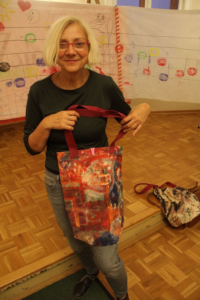 Die Jugendkunstschule wiederrum sorgte dafür, das sich Groß und Klein kreativ austoben konnten. Was dabei herauskommen kann, das konnte man auch ganz praktisch sehen - zum Tag der Jugendkunstschulen vor einigen Wochen hatte man kreative Geister Leinenstoff frei nach Laune gestalten lassen und danach zu Beuteln verarbeitet, die man heute denn auch erwerben konnte.