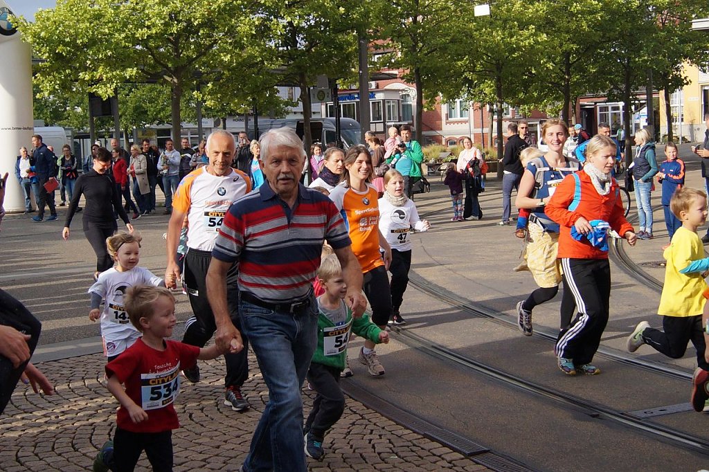 Im Anschluss fiel um 10:00Uhr sowie um 10:30Uhr der Startschuss für die Läufer der drei Streckenlängen. Die Laufstrecken führten die Teilnehmer aller Altersklassen in Streckenlängen von je 3,3 km / 6,6 km / 9,9 km durch die Innenstadt. Jeder gab sein Bestes, um sein eigenes Ziel zu erreichen. Die Zuschauer an der Laufstrecke feuerten die Läufer mit Beifall und Zurufen immer wieder an.