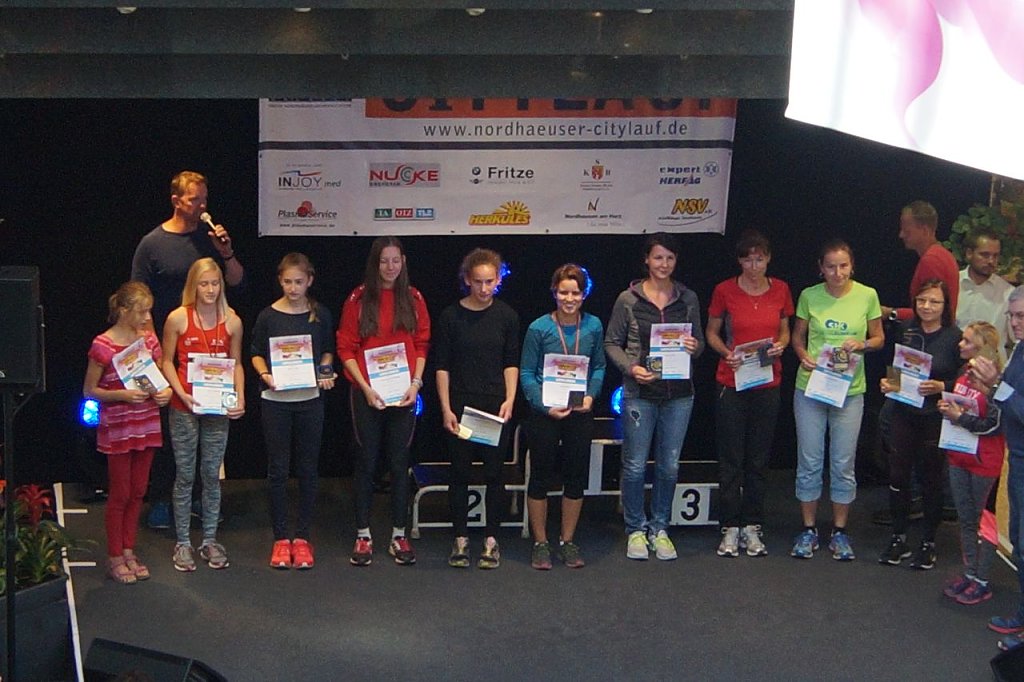 Nach einer Verschnaufpause fand um 13:00 Uhr in der Südharz-Galerie die Siegerehrung statt. Geehrt wurden die Sieger und Siegerinnen in den einzelnen Altersklassen und der jeweiligen Laufstrecke. Wir gratulieren an dieser Stelle den Gewinnern und Gewinnerinnen für ihre tolle Leistung.
