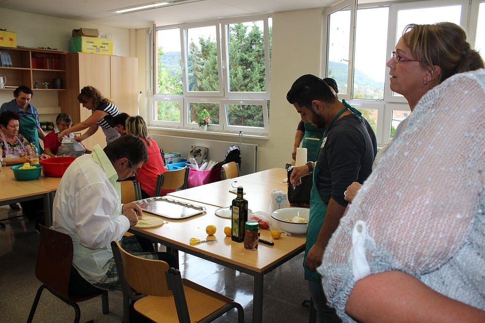 Am Nachmittag hatten sich wieder Prominente, etliche Politiker, Geschäftsleute und Mitglieder von Vereinen an den Herd gestellt, um gemeinsam mit Migranten zu kochen. Schon Tradition ist, dass man es in der Küche der Östertalschule macht.