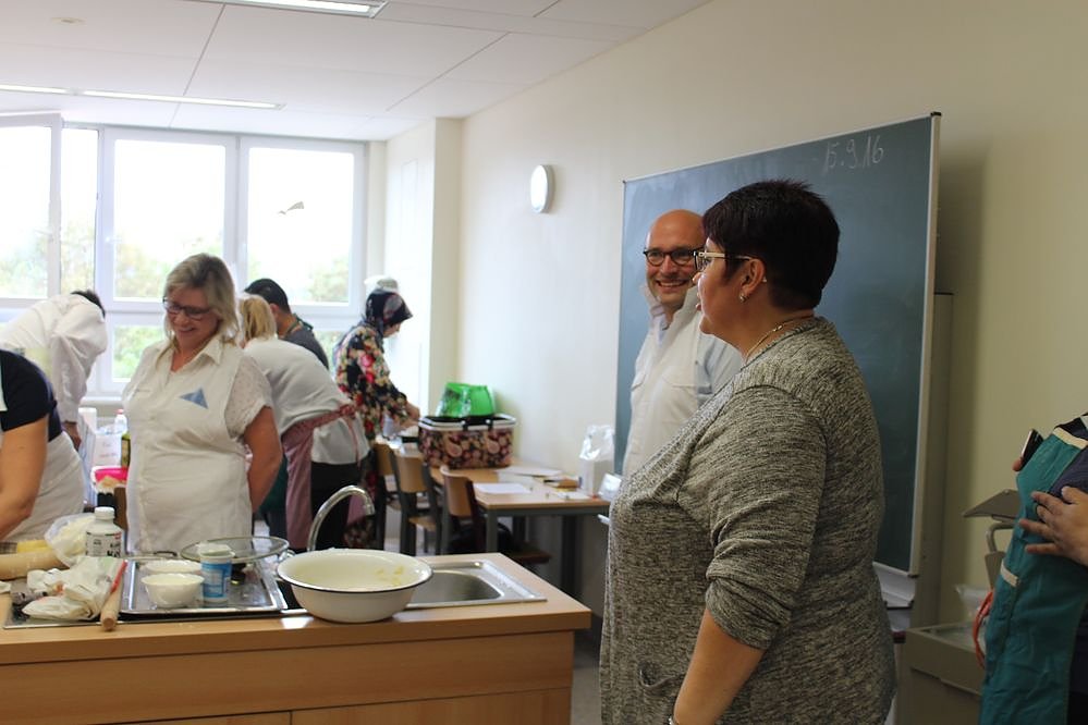 Gekocht wurden deutsche, tatarische, russische ukrainische und tschetschenische Gerichte. Erstmals gab es auch ein syrisches Gericht. Und zwischen durch immer wieder Tänze.