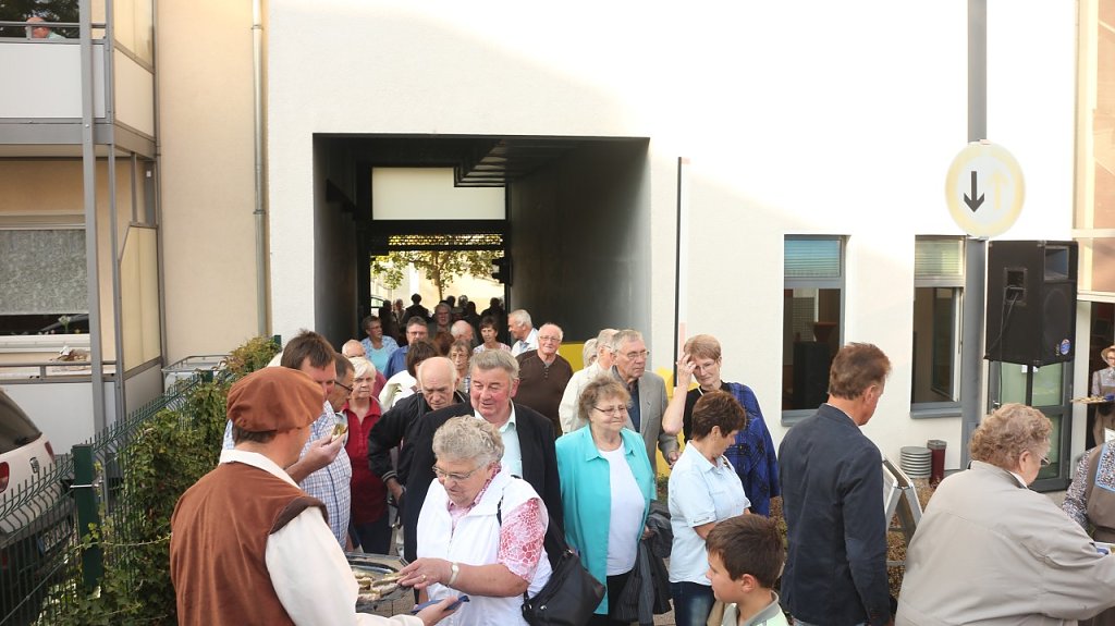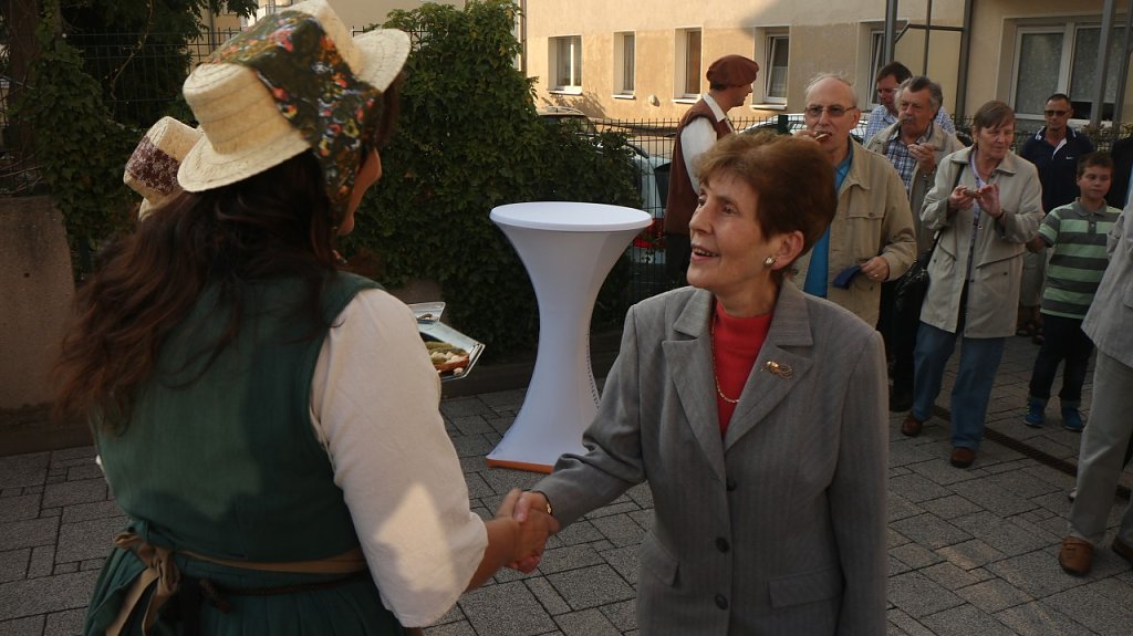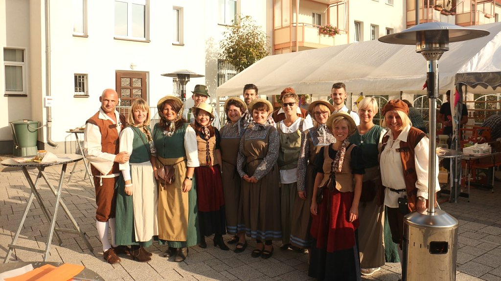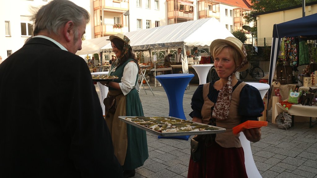 Eine Weihnachtsfeier gab es bei der Volksbank schon einmal, ein Sommerfest auch, jetzt war einmal der Herbst dran. Den Innenhof der Filiale am Taschenberg hatte man entsprechend der Jahreszeit geschmückt, die Mitarbeiter hatten sich frei nach dem Motto Erntezeit auf dem Land in Schale geschmissen,