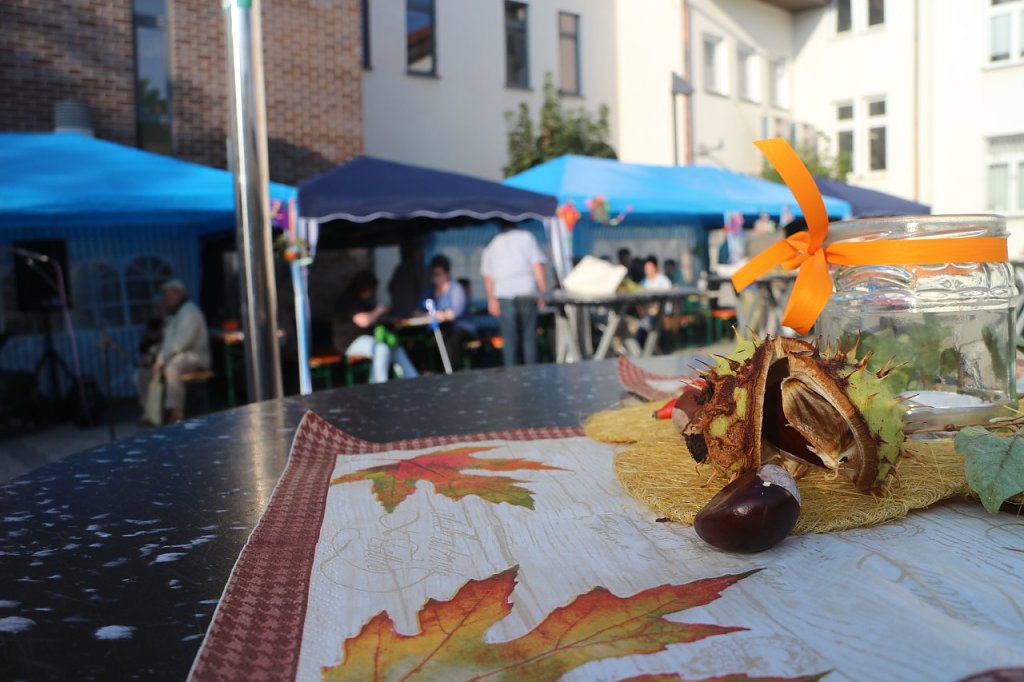 Die Musik kam von Ronald Gäßlein, Manfred Meinhardt zeigte wie das Drechseln von Hand funktioniert, die Mühlhäuser Werkstätten boten Korbflechten und Töpferware an, die Jugendkunstschule zeigte den kleinen Gästen, was man alles aus Kürbissen machen kann. Die Deko kam unter anderem vom Kindergarten Wirbelwind aus Niedersachswerfen.