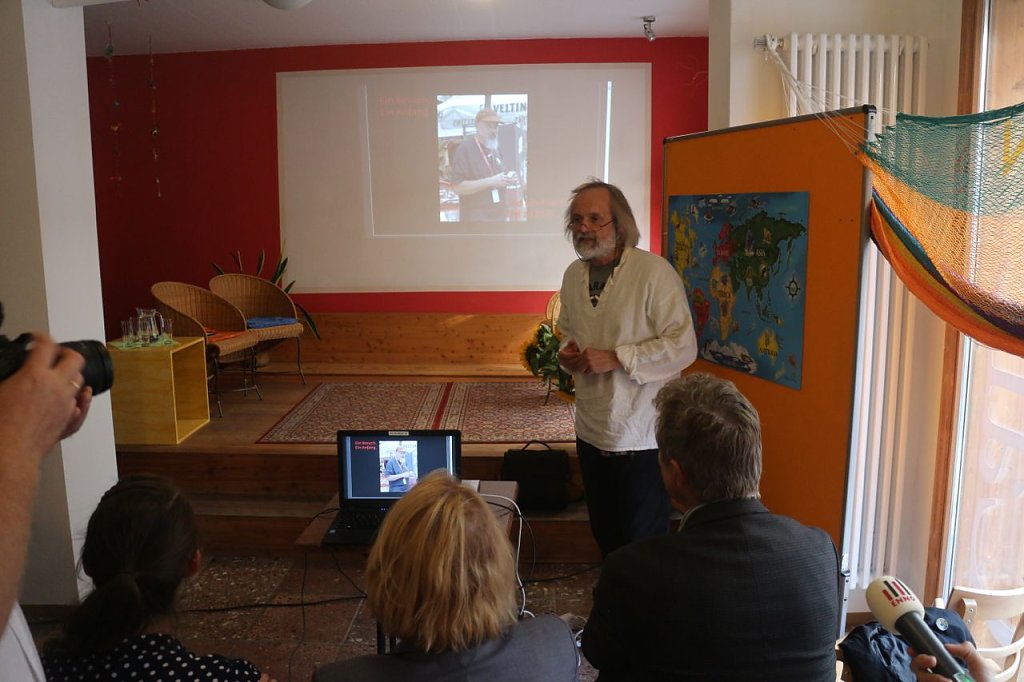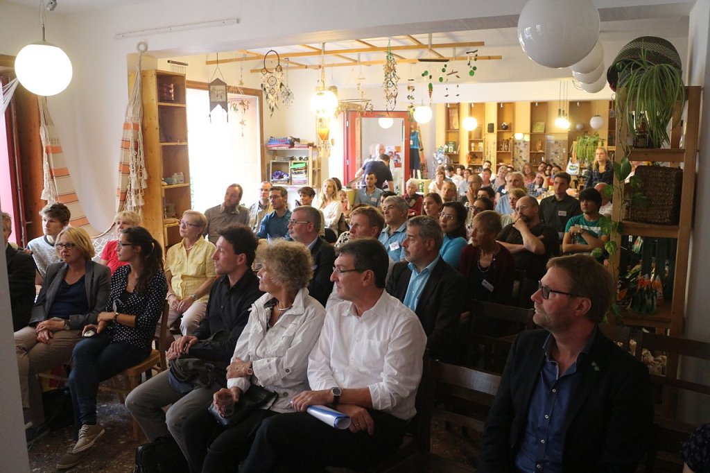 Den Geburtstag begann man mit ernsten Diskussionen. Thüringens Justizminister Dieter Lauinger weilte im Weltladen und sprach mit Vereinsgründer Peter Kube über das aktuelle Weltgeschehen, Flüchtlingspolitik und Religion.