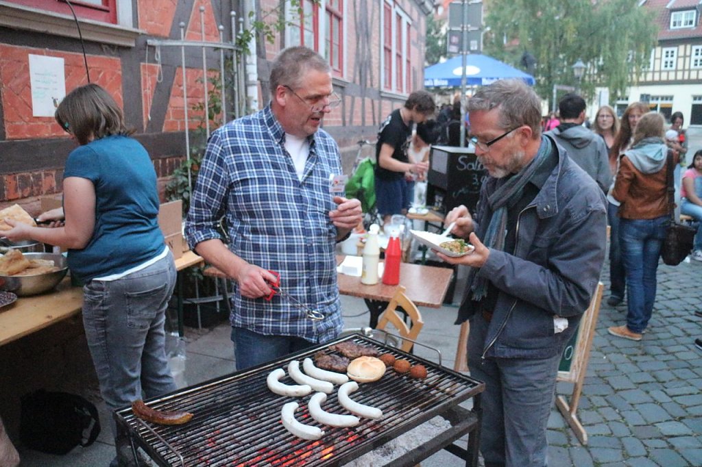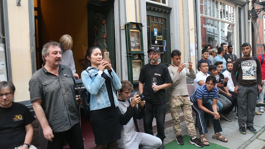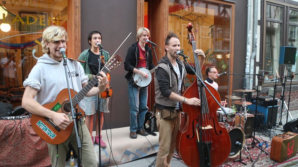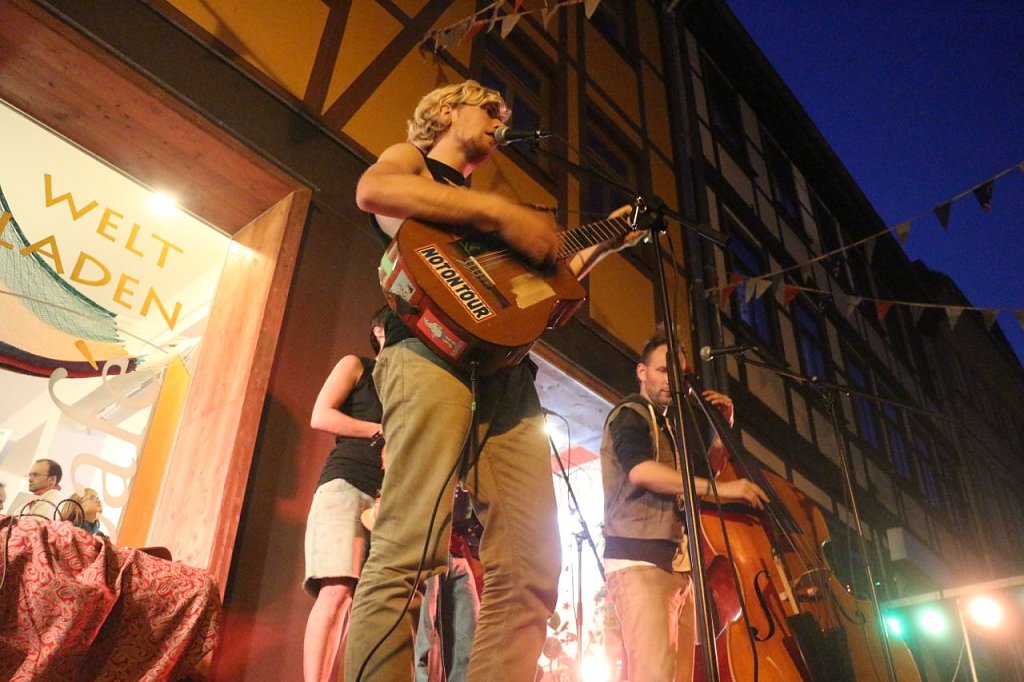 Danach ging man zum gemütlicheren Teil über. Bei Musik von Trykka, Pulsar Trio, Weltkind und einer kurzen Einlage der alten Altendorfer Liedermacherszene kam wieder einmal Leben in die Altstadt. Weltoffen, gemeinsam und friedlich.