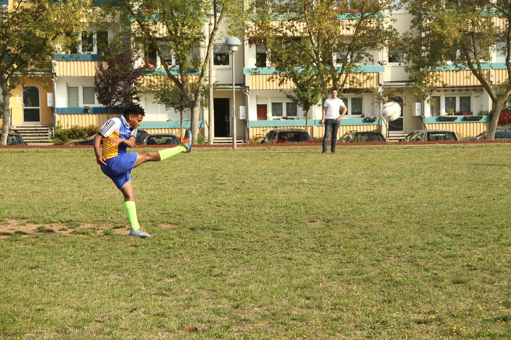 Die Mischmannschaft aus Deutschen und Migranten steht gut im Training, jeden Montag trifft man sich in der Halle des LV Altstadt und kickt gemeinsam. "Das ist gelebte Integration", sagt Trainer Rainer Krone, der seine Jungs heute auch auf dem Rasen des Sportplatzes in Ost antrieb. Gespielt wurde aber auch im "Menschen-Kicker", hier sind nicht Einzelleistungen sondern Teamgeist gefragt. Wer das Finale für sich entscheiden würde, stand am Vormittag noch nicht fest.