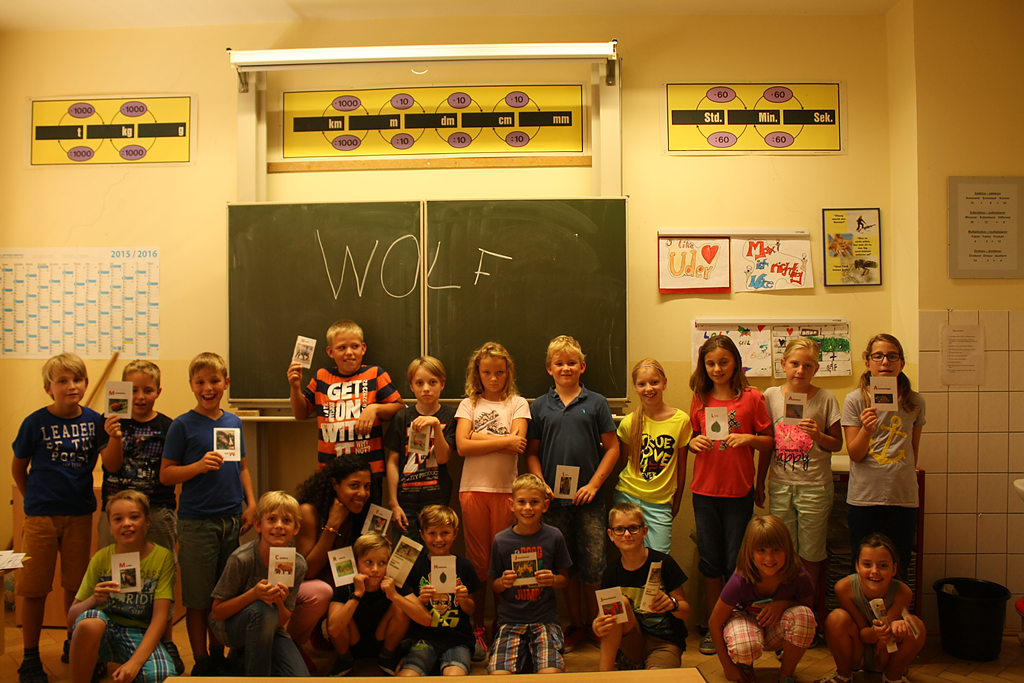 Auf eine spielerische Art und Weise sind grundlegende Informationen über den Wolf vermittelt worden: So konnten die Schüler unter anderem einen Wolfsschädel untersuchen und Wolfspuren nachstellen.