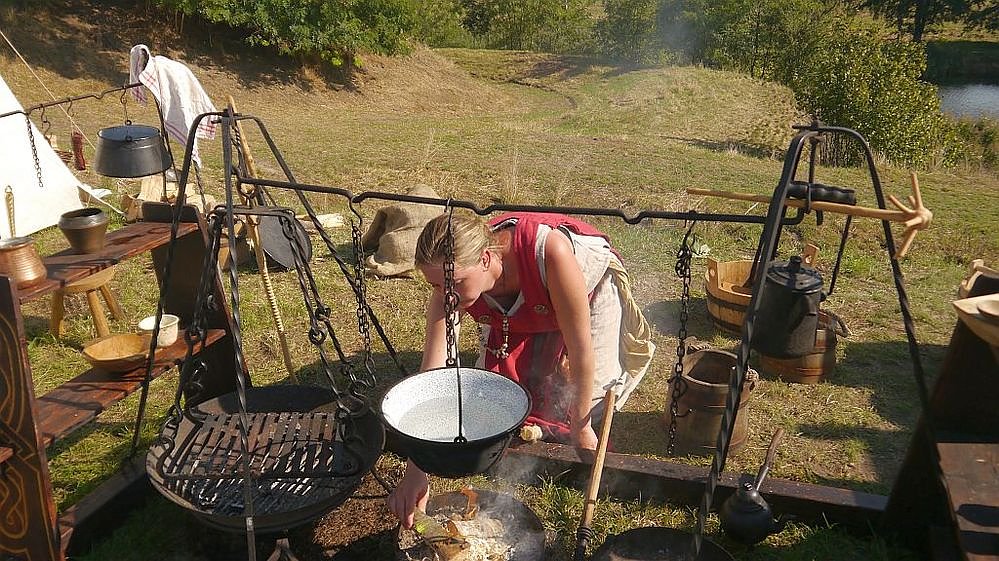Auf dem Gelände wurde auch altes Handwerk dargestellt. Beispielsweise wurde mit Hilfe von Mühlsteinen Mehl gemahlen, welches später verwendet wurde.