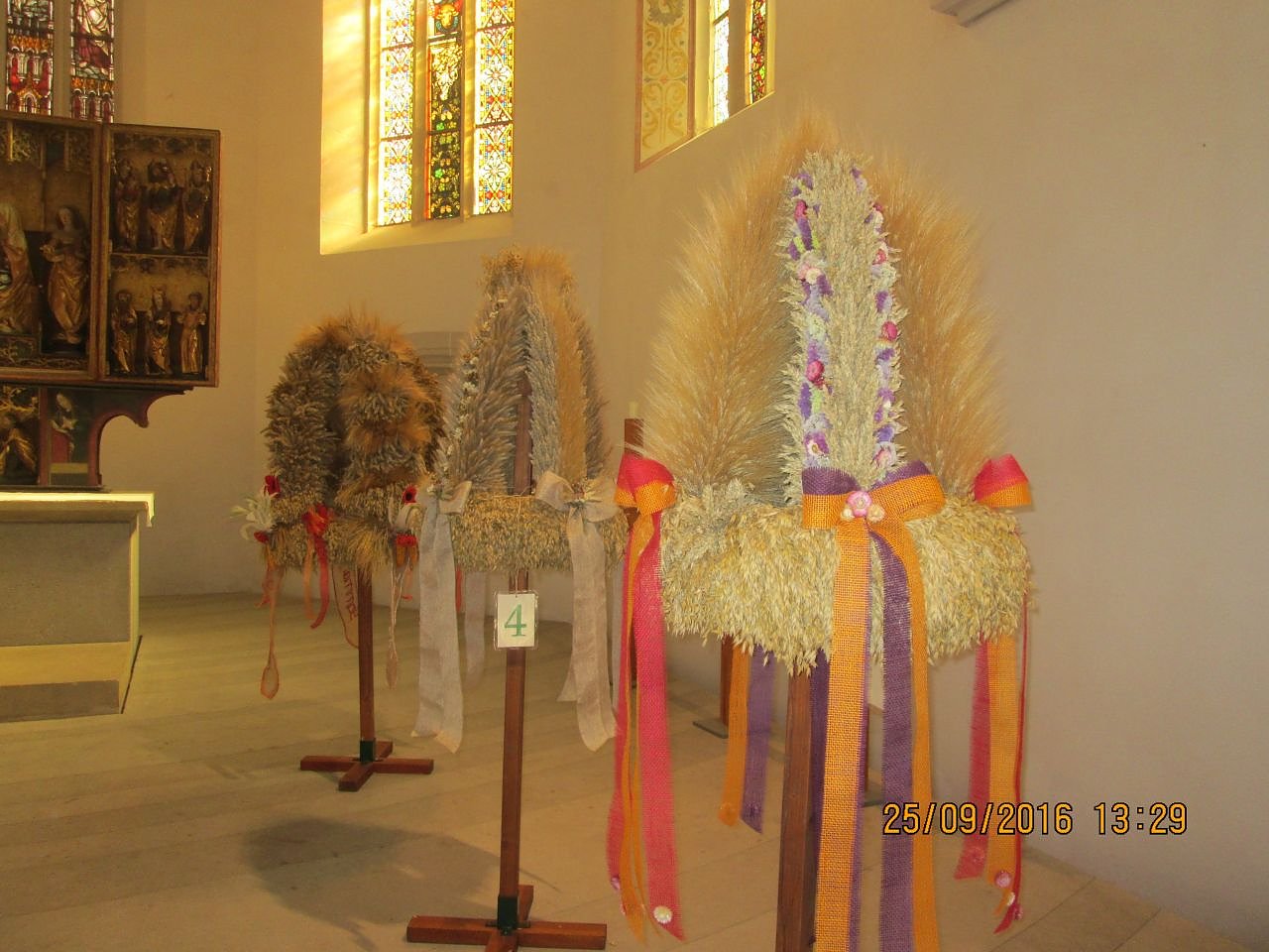 Eine unabhängige Jury hatte die Qual der Wahl zwischen 7 wunderschönen Exemplaren zu bewerten. Kriterien hierfür sind die Verwendung von verschiedenen Getreidearten, die Proportionen (Verhältnis Krone zum Kreis), die Gleichmäßigkeit und Festigkeit, schmückende Elemente.