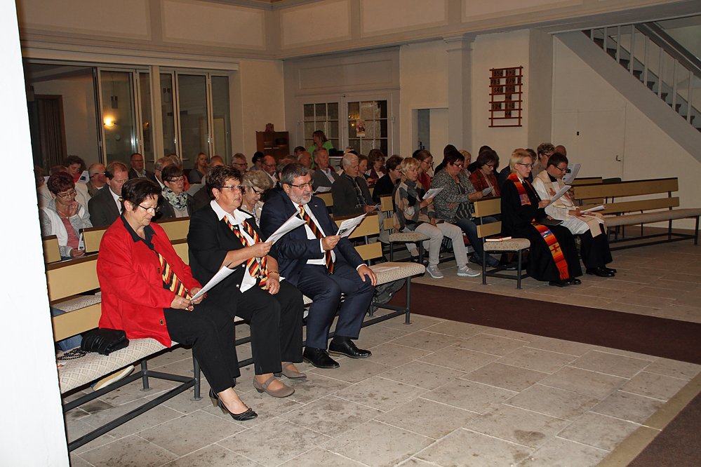 Er mahnte an, die turbulente Zeit und deren politische Folgen vor mehr als einem halben Jahrhundert in Erinnerungen als Meilenstein der deutschen Geschichte zu bewahren, auch weil leider in den jüngeren Generationen das Wissen um diese Geschehnisse mehr und mehr verblasst. Im Anschluss an die Andacht trafen sich an die sechzig Personen im Gemeinderaum der Kirche, um bei Imbiss und Getränken miteinander ins Gespräch zu kommen. Eine würdige Veranstaltung nahm so einen sehr freundschaftlichen und beinahe familiäre Ausklang.