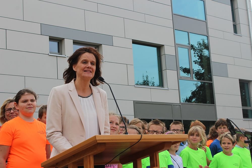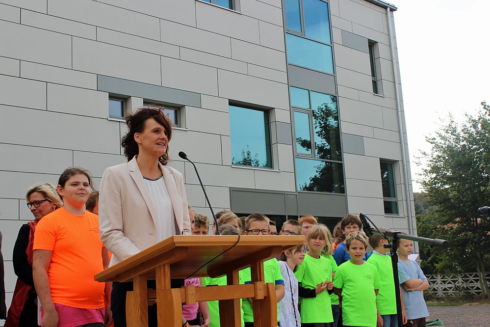 Wilke zeigte sich in ihren Begrüßungsworten hoch erfreut über das gelungene Werk. Mit diesem Erweiterungsbau sieht sie ein Zeichen für Aufbruchsstimmung und Zuversicht. Das ist der Grundstein für die Entwicklung unserer Kinder.