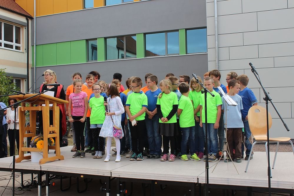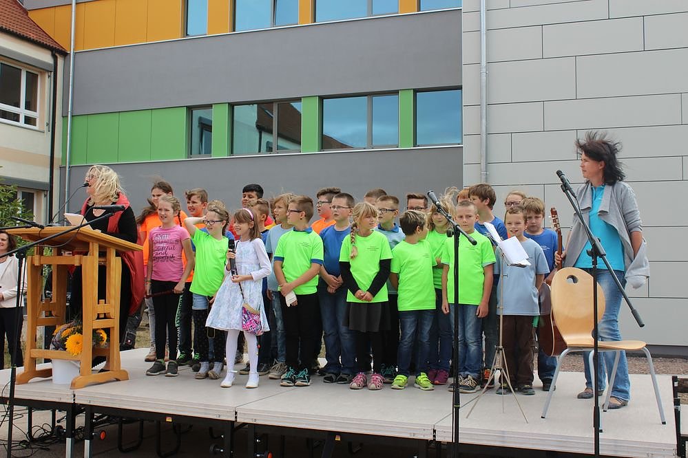 Zur Eröffnung des kleine Festakts hatte der Schulchor ein kleines Festprogramm eingeleitet.