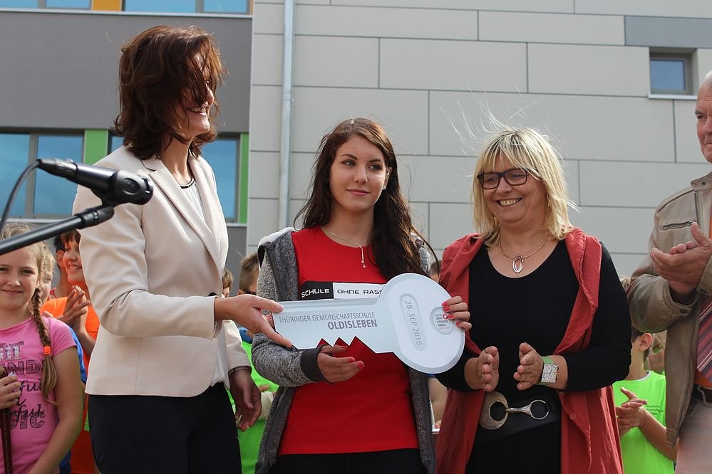 Am heutigen Mittwoch fand zur Mittagszeit Uhr im Beisein von Landrätin Antje Hochwind (SPD) in der Thüringer Gemeinschaftsschule in Oldisleben die feierliche Übergabe des Erweiterungsneubaus statt. Und wenn da einigen Leuten die Haare zu Berge standen, dann lag es nicht am Neubau...