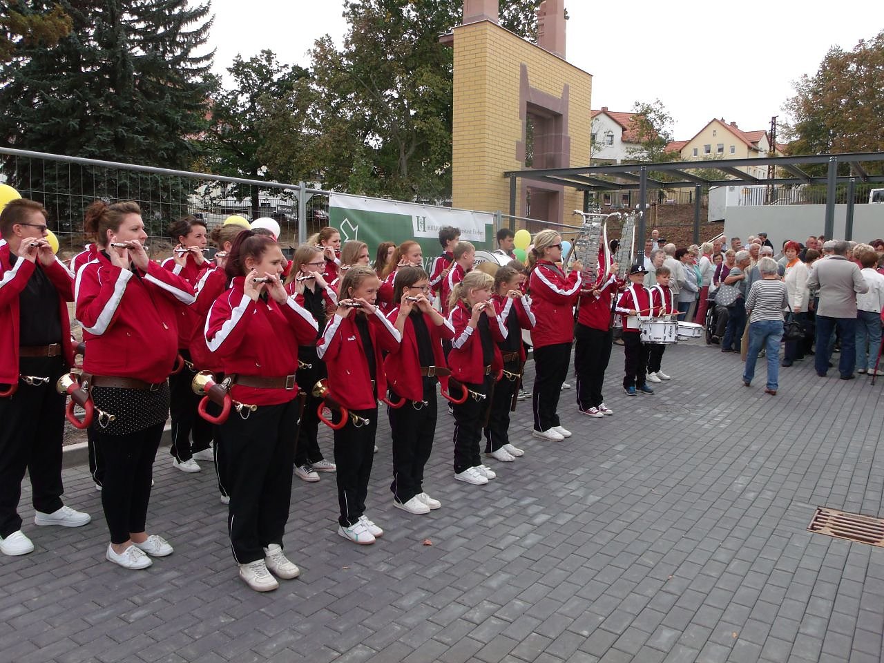 Der Spielmannszug aus Ziegelrode brachte fröhliche Stimmung unter die Gäste. Diese waren sehr erwartungsvoll und standen geduldig an, bevor das Gebäude besichtigt werden konnte, geschuldet dem Andrang. Ob vor der Besichtigung oder danach: es gab im und um das Zelt im Freien so einiges für das leibliche Wohl.