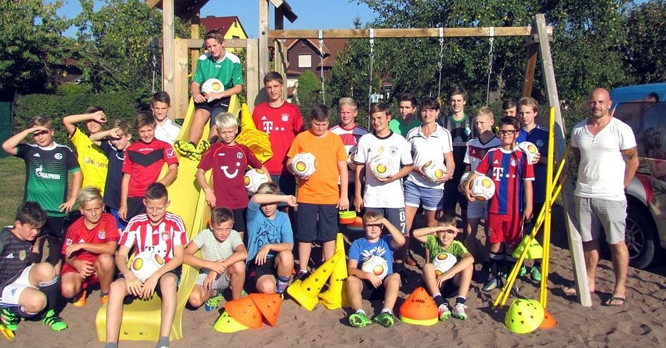 In Auswertung der Ferienaktion löste das Badehaus-Team sein Versprechen ein und übergab an die Teilnehmer des Sommerferien-Camps und an die Nachwuchsfußballer aus Niedersachswerfen Trainingsgeräte im Wert von 555 Euro...