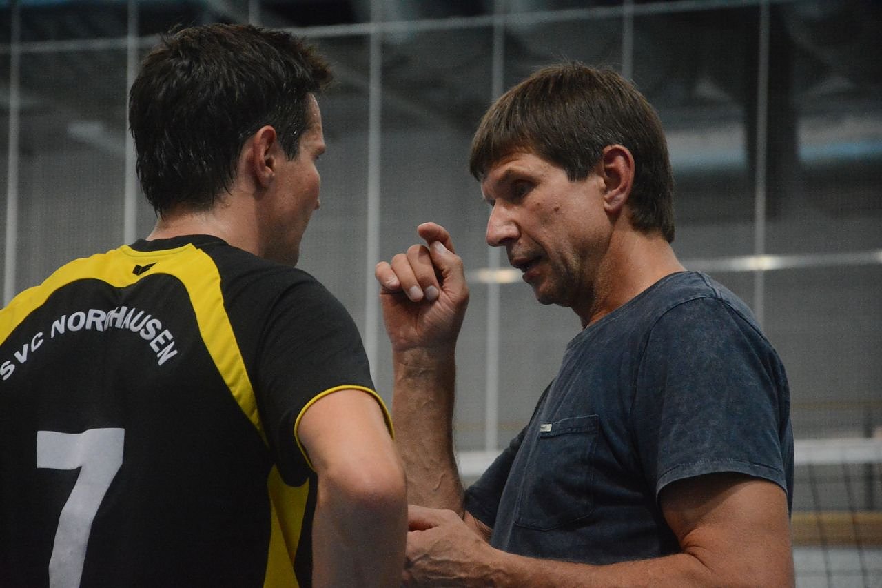 Bis auf Evgeny Metelski, Domenico Nieddu und Gregor Hesse hatte Metelski alle Spieler zur Verfügung. Und die Trainingspartie begann recht vielversprechend für den SVC, er legte mit 0:1 vor. Mit starken Aufschlägen, druckvollen Angriffen über die Außen und einer guten Blockarbeit setzten die Nordhäuser die Akzente. Im ersten Satz standen schon Leute auf dem Feld, die den Stammsechser bilden werden. Wir hatten eine gute Abwehr und der Gegner war sicherlich ein bisschen überrascht, was von unserer Seite kam, sagte Rieger zum souveränen Satzgewinn.