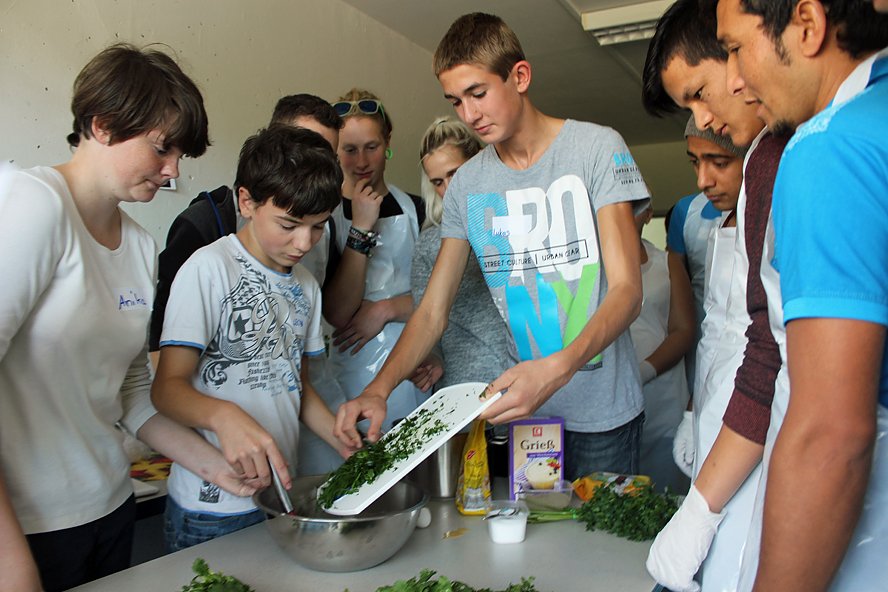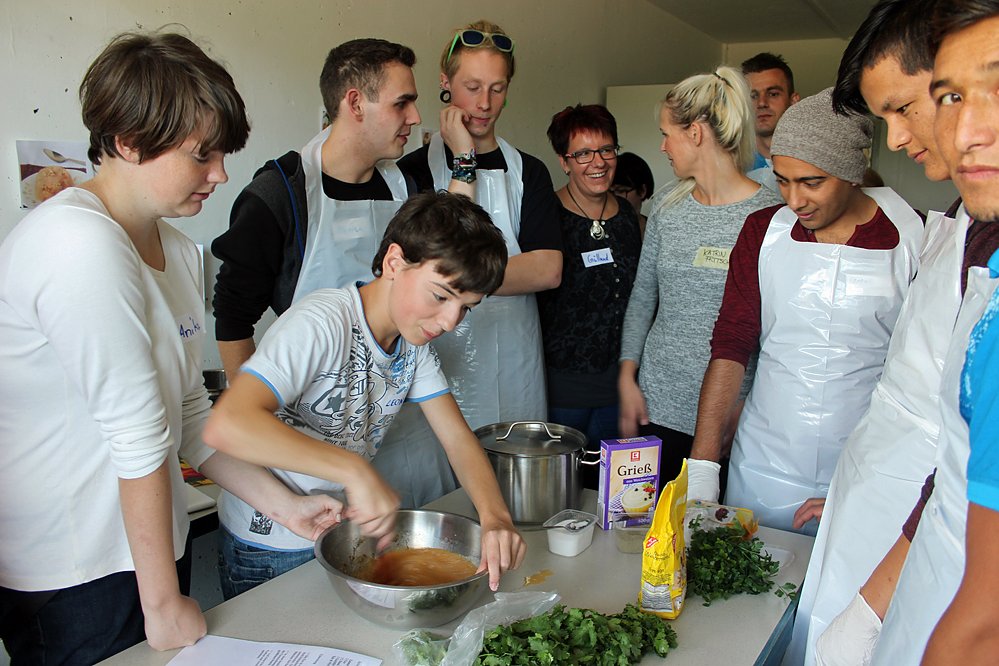 Gemeinsam mit Bundesfreiwilligen gestalteten die Gäste später auch Workshops. Es soll ein Tag der Begegnung sein zwischen Zugezogenen und Einheimischen, Jungen und Alten – und den vielen Kulturen, die diese mitbringen sein, natürlich auch beim Essen.