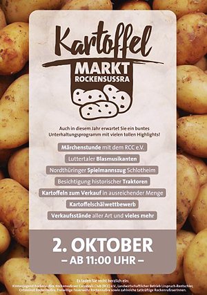 Am Sonntag, 2. Oktober 2016 - ein Tag vor dem Tag der Einheit - findet in Rockensußra ab 11:00 Uhr der nun schon traditionelle Kartoffelmarkt statt. Was ist alles geplant?