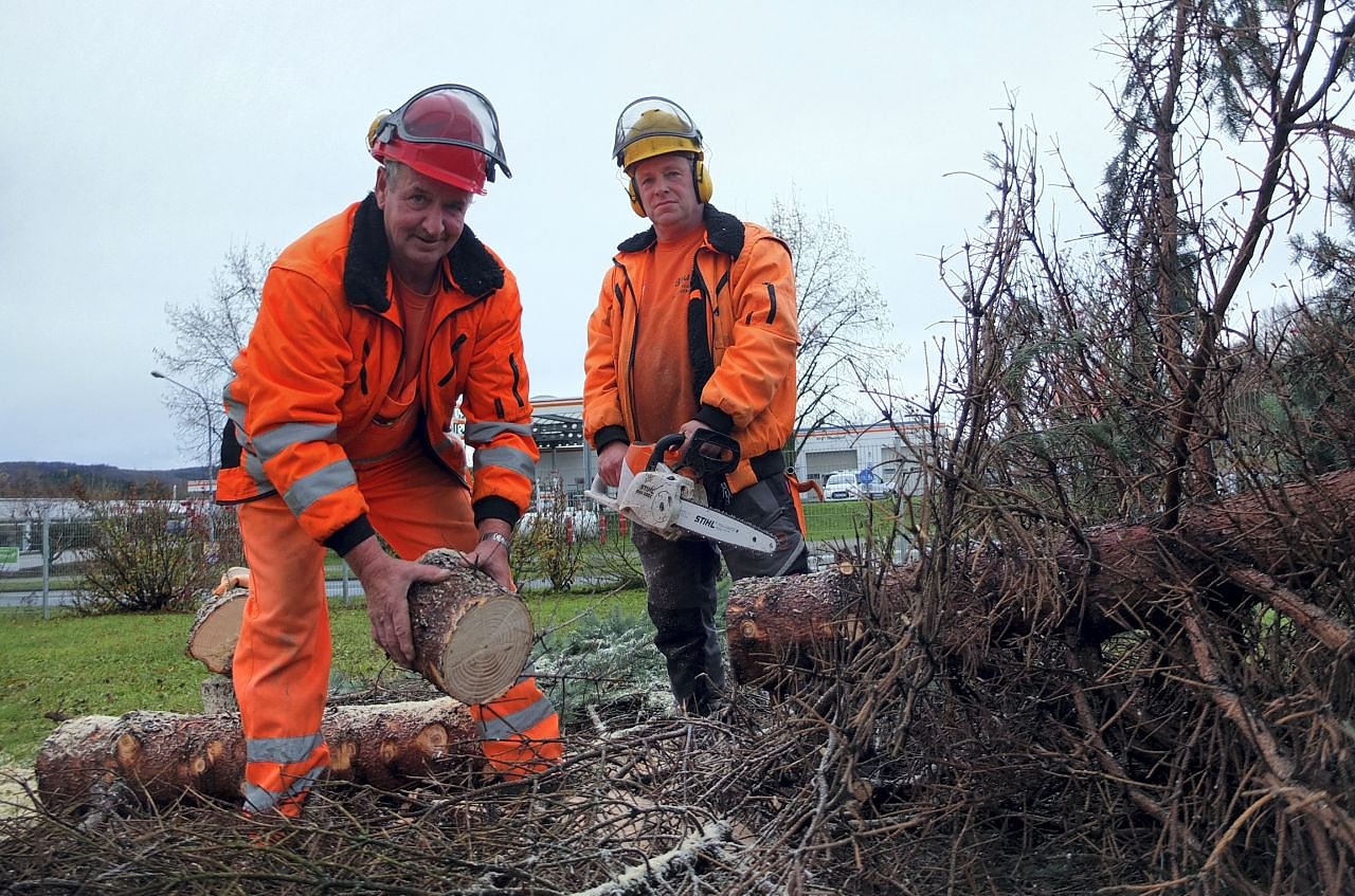 Ein großer Nadelbaum lag zum Beispiel für die Sägeübungen bereit. Akku-Geräte seien sicherlich die Zukunft, weiß Bauhofleiter Stefan Lauterbach.