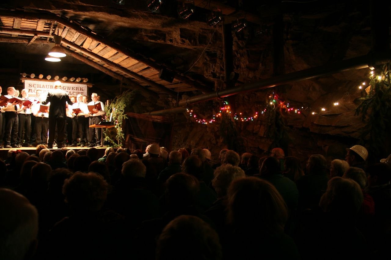 In einer Tiefe von fast 300m präsentieren Peggy Bitterolf und Solisten der Kreismusikschule Mansfeld – Südharz Carl Christian Agthe gemeinsam mit dem Männerchor Concordia Wettelrode unter Leitung von Lothar Morgner ein Programm mit festlichen Melodien und traditionellen Weihnachtsliedern.