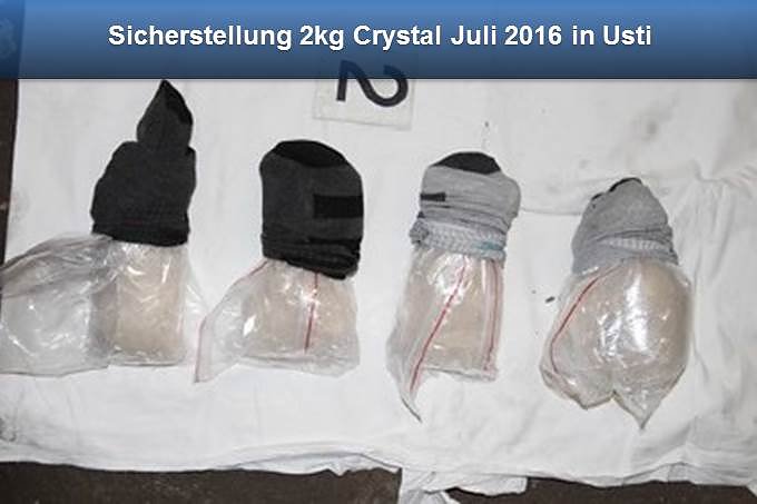 So konnten bisher insgesamt mehr als 104,5 kg Crystal/Metamphetaminbase; 2,9 kg Kokain; 2,2 kg Amphetamin und 3 kg Marihuana sichergestellt werden.