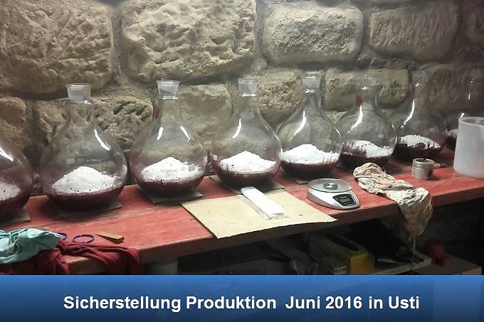 Durch die Ermittler der gemeinsamen Ermittlungsgruppe wurden dabei auch 2 Großlabore für Crystal sichergestellt. In einem Labor in Tschechien beschlagnahmten die Ermittler mehr als 20 kg Crystal und 90 kg Grundstoffe.