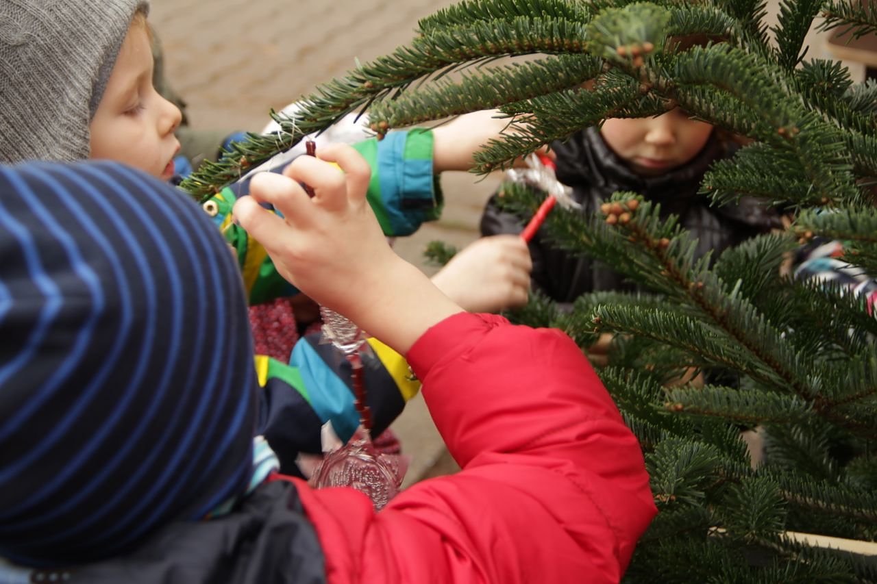 Die kleinen Holzhäuschen stehen schon, heute kam auch der übergroße Adventskranz an. Das immergrüne Gesteck aus Fichte und Kiefer wurde in diesem Jahr von der Tagesgruppe des Diakonie-Suchthilfezentrums zusammengebastelt.