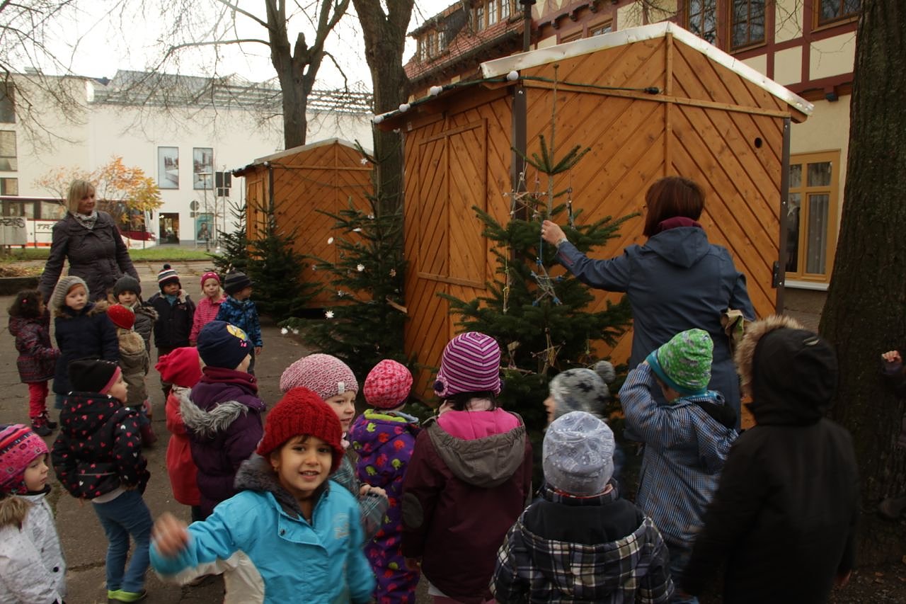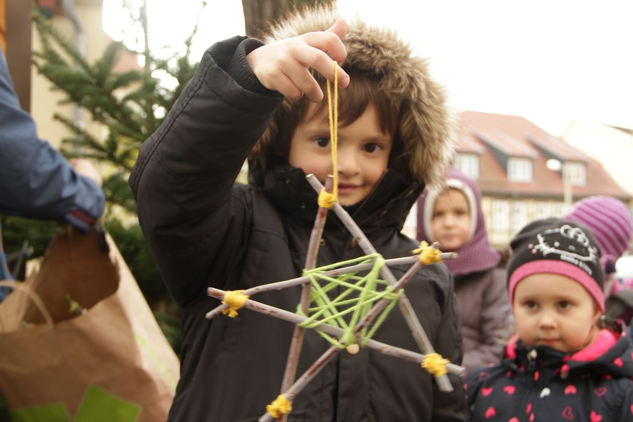 Für das weitere weihnachtliche Dekor hatten sich die Kinder des ökumenischen Kindergartens ins Zeug gelegt und fleißig Sterne gebastelt. Als Dank gab es von KILA Chef Frank Tuschy einen Gutschein, mit dem alle Bastler nach Lust und Laune das mittelalterliche Karussell nutzen dürfen. Außerdem wird es ab Samstag auf dem Kirchplatz natürlich jede Menge Handwerkskunst zu sehen geben - Drechsler, Messerschmied und Glaser haben sich schon angekündigt. Besonders stolz ist Frank Tuschy auf die Medaillendruckmaschine mit der man sich Messinganhänger mit Blasii-Motiv pressen kann.