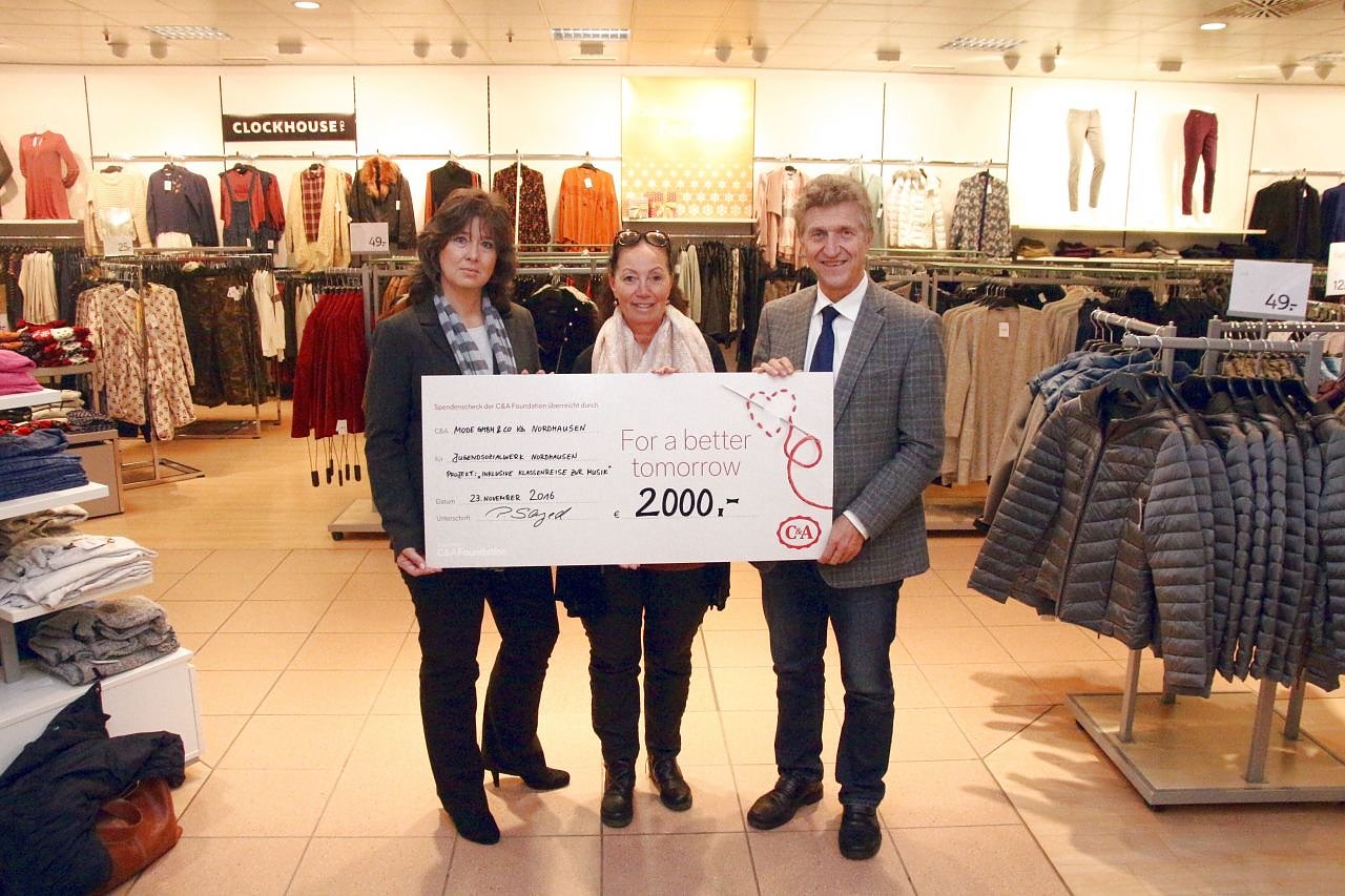 Mit der jährlichen Adventsspende von 2000 Euro unterstützt in diesem Jahr die Nordhäuser C & A – Filiale das Projekt Inklusive Klassenreise zur Musik des Jugend- und Gästehauses Rothleimmühle. Kooperationspartner ist die Stiftung Kinder brauchen Musik Hamburg, Rolf Zuckowski...