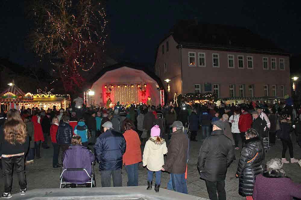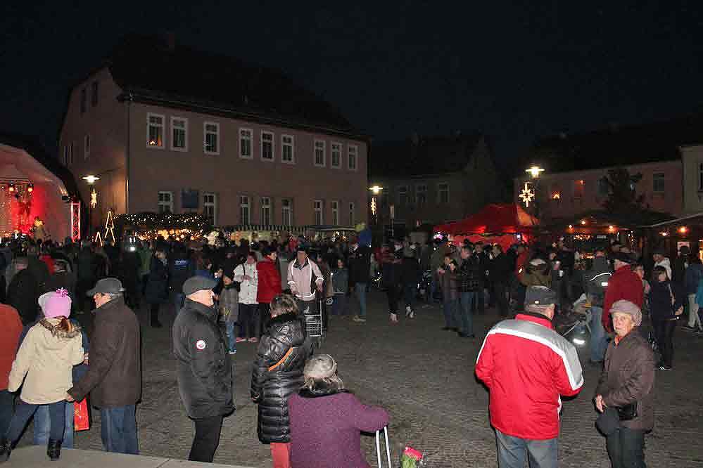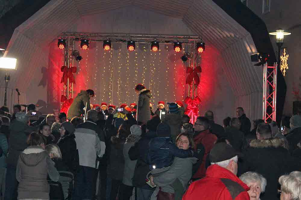 Durch mehrere Firmen und Einrichtungen wurde es finanziell ermöglicht. Den gewünschten Schnee hatte der Bürgermeister noch nicht, aber die Überlegung, ob man nicht eine Schneekanone im nächsten Jahr einsetzen sollte. Dafür gab es dieses Jahr aber schon mal eine schicke neue Bühne an einem neuen Stadtort auf dem Markt.