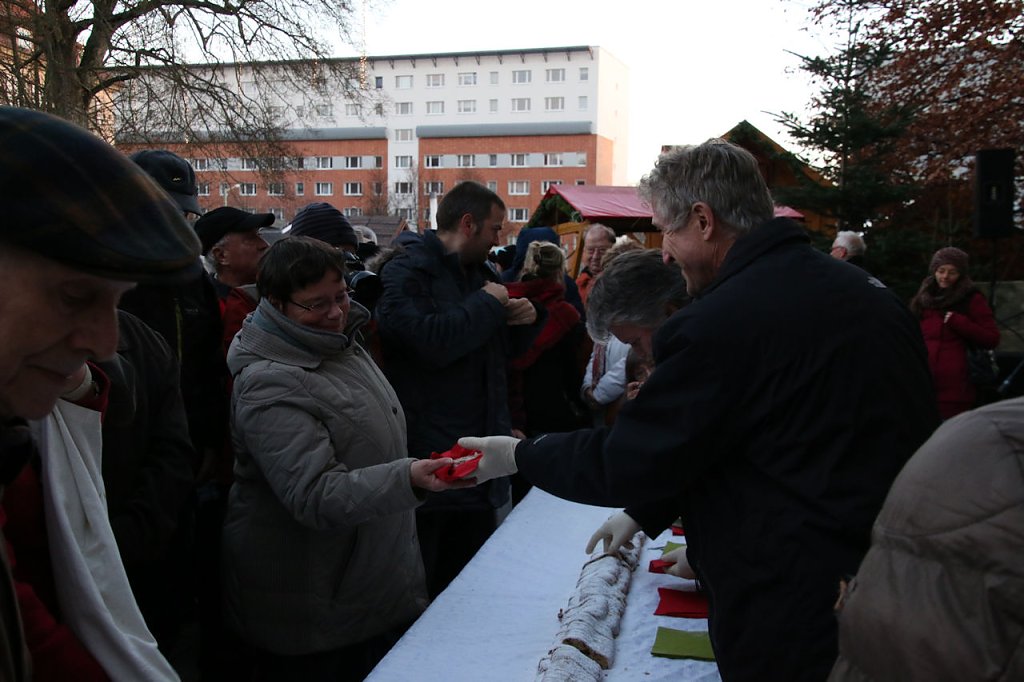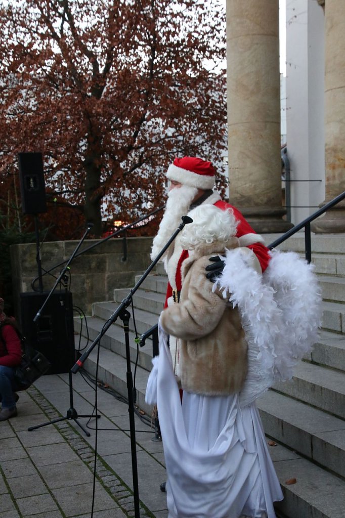 Nachdem traditionell der Weihnachtsmarkt am Theater eröffnet hat, sollte um 18.00 die Eröffnung auf dem Bebelplatz sein. Kurz vor 18 Uhr war Peter Blei auf dem Platz...