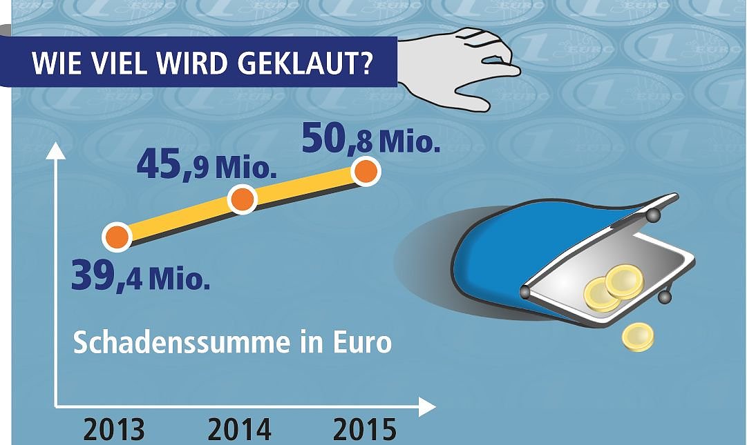Am liebsten schlagen die Diebe in Menschenansammlungen und im unübersichtlichen Gedränge zu. Laut Polizeilicher Kriminalstatistik wurden im Jahr 2015 in Deutschland insgesamt 168.142 Taschendiebstähle angezeigt, das ist ein Anstieg von ungefähr sieben Prozent gegenüber 2014 (157.069 Fälle). Dabei entstand ein Schaden von 50,8 Millionen Euro.