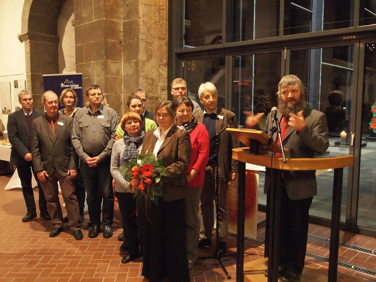 Es fiel der Pfarrerin Cordula Haase vom Lothar-Kreyssig Ökumenezentrum zu die Laudatio auf die diesjährigen Preisträger des Ökumenepreises zu halten. Die Auszeichnung nahm in diesem Jahr Matthias Hänel entgegen, Pfarrer der Gemeinde Nordhausen Salza-Niedersalza. "Was sie wohl in besonderer Weise auszeichnet sind offene Türen und offene Herzen für Menschen die hier in Deutschland und in Nordhausen Zuflucht suchen, offene Türen und Herzen für Menschen aus anderen Kulturkreisen", sagte die Pfarrerin. Seit sieben Jahren engagiert man sich in der Gemeinde in der Flüchtlingshilfe, mit viel Zeit, Raum und Herausforderung. Das sei für Pfarrer Hänel nicht etwa eine "zweite Aufgabe" neben der Gemeindearbeit sondern ein unmittelbarer Teil derselben. "Sie haben die Menschen in ihrer Ehre geachtet und in ihrer Würde geschützt. Wo sie sich anderen Menschen zuwenden, lassen Sie sie das spüren. Dazu gehört Leibsorge, Seelsorge, Schutz des Lebens, das Bemühen dem anderen gerecht zu werden, die Sprache des Herzens zu sprechen um sich zu verständigen." sagte Cordula Haase. "Es ist eine große Herausforderung jedem Einzelnen gerecht zu werden, darauf haben sie sich eingelassen. Sie haben Menschen das Ankkommen erleichtert", so die Pfarrerin in ihrer Laudatio, Humanitäre Hilfe brauche zuweilen Mut und Zivilcourage, in Salza habe man "das Maximum an Schutz und Gastfreundschaft gewährt, das einer Gemeinde möglich ist."