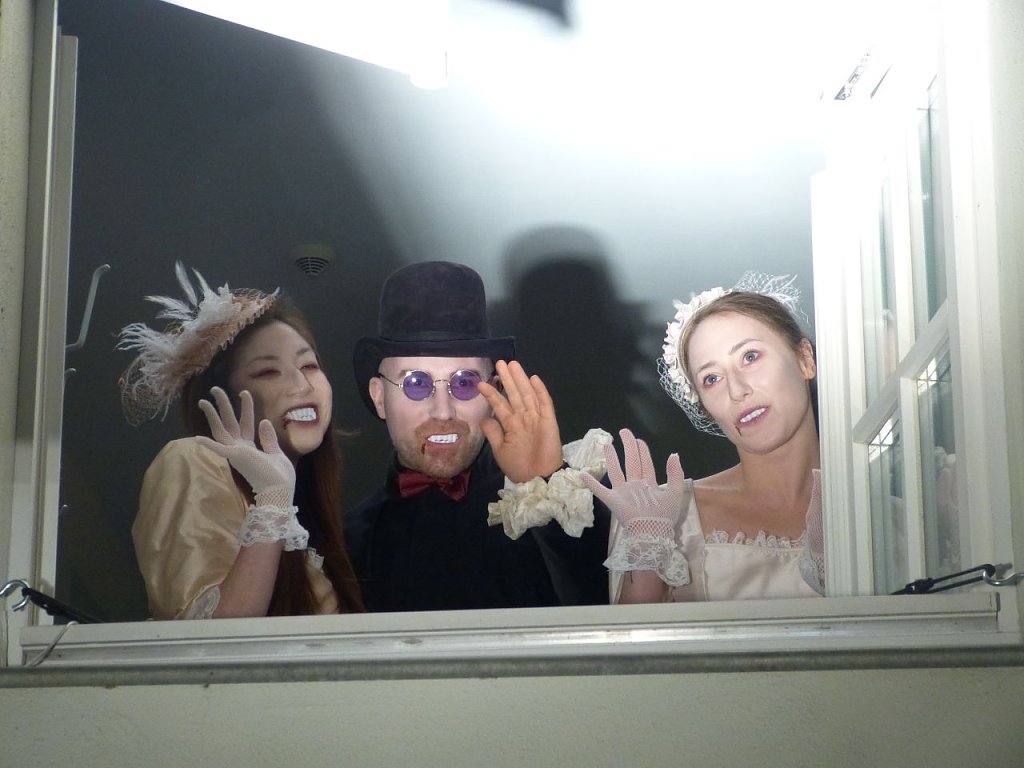 Adventskalender am Nordhäuser Theater Das zweite Fenster Sehr spannend war es heute: Im Fenster waren Dracula und zwei weibliche Vampire. Und der Fensterpate, der FSV Wacker 90 Nordhausen, hat Weihnachtslieder gesungen – am Klavier begleitet von vom Intendanten Daniel Klajner...