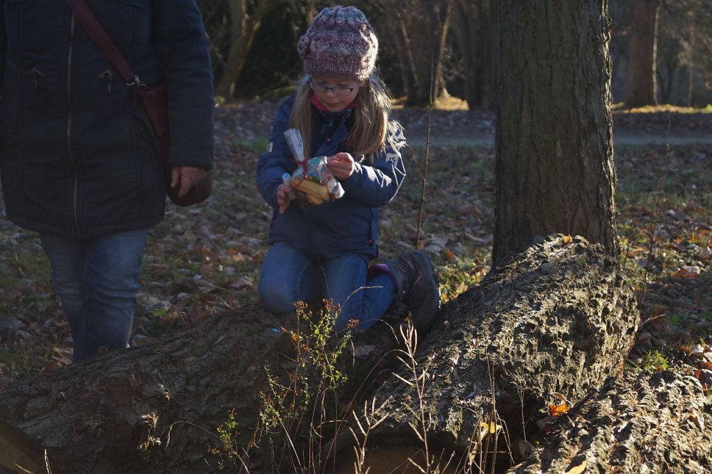Unter dem diesjährigen Motto Grimms Märchen führte der Spaziergang weiter durch den Park. An verschiedenen Haltepunkten erfuhren die Gäste geschichtliche Hintergründe zum Park. Aber nicht nur das. Es gab natürlich auch weitere Überraschungen. Beim gemeinsamen Märchen-Raten gab es kleine Aufmerksamkeiten vom Weihnachtsmann. Überall im Park wurden im Vorfeld kleine Weihnachts-Tütchen versteckt, die es nun zu finden galt. Sowohl die Kleinen als auch die Großen hatten dabei ihren Spaß.