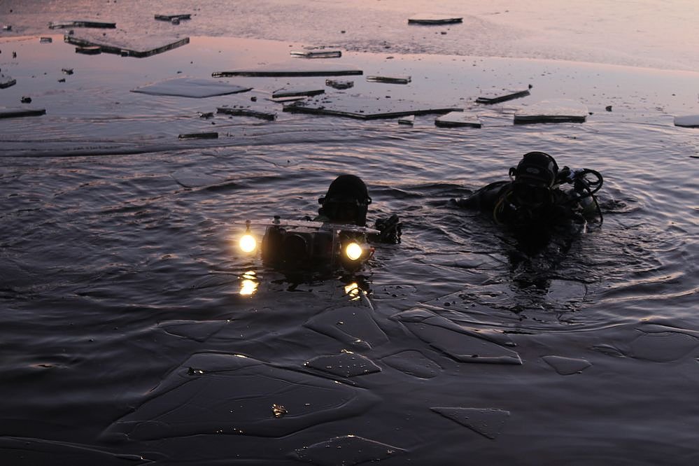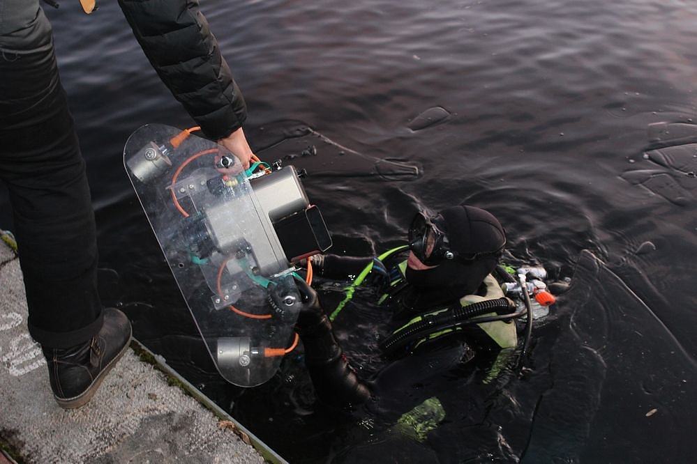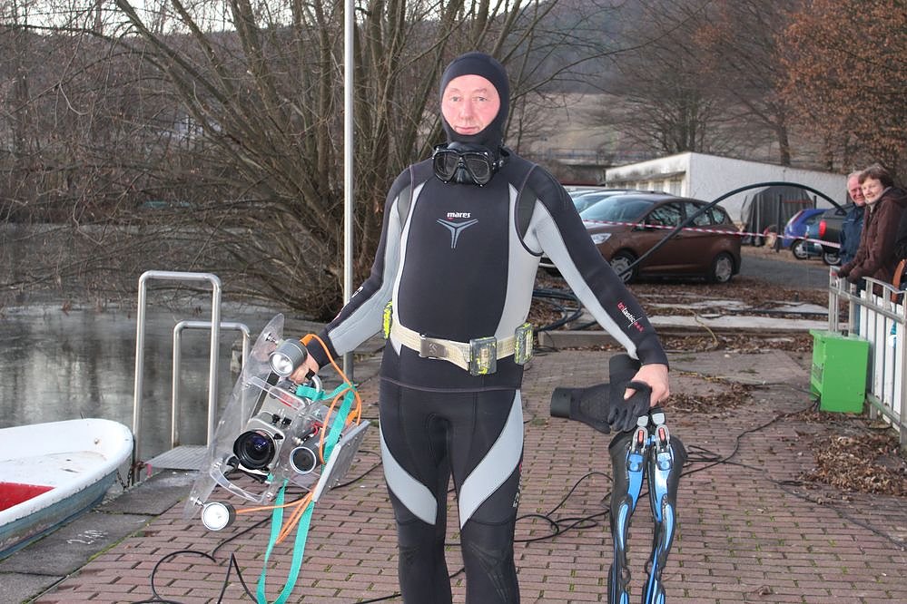 Das Versenken haben sich die Taucher mit einer Unterwasserkamera festgehalten. Wenn es nicht so aufwendig wäre, könnte sich Karl-Heinz Genzel vom DRK Kreisverband vorstellen gleich eine Videokamera zu nehmen und das Ganze auf eine Leinwand zu zaubern. Was nicht ist, kann ja noch werden.