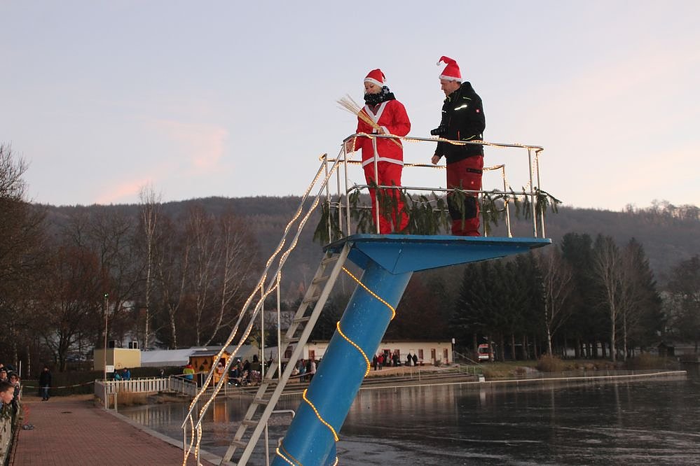 So einen Auflauf beim Weihnachtstauchen am Bebraer Teich von Sondershausen hat es noch nicht gegeben.