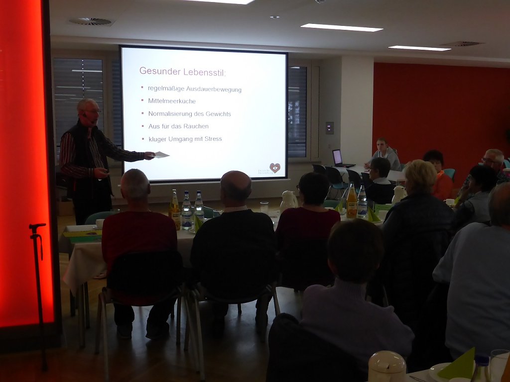 Zur Migliederversammlung hielt Dr. Kornmann im Rahmen der Herzwoche 2016 im Südharzklinikum Nordhausen, einen Vortrag zum Thema "Herz unter Stress" und machte darin nochmals deutlich, wie es zu solchen Krankheiten am Herzen kommen, wie man sie verhindern und wie man künftig durch die Beachtung wichtiger Lebensweisen damit Leben kann und muss! Hauptfaktoren sind oft ungesunde Lebensweise und Stress im Alltag, aber auch erbliche Veranlagungen können ein Grund für eine Herzerkrankung sein. Deshalb ist es besonders wichtig, sich an den vorhandenen Lebensumständen neu auszurichten und eine gesunde und sportliche Lebensweise als wichtigste Erkenntnis für die Zukunft zu nutzen und anzugehen. Für diesen sehr interessanten Vortrag bekam Dr. Kornmann viel Beifall.