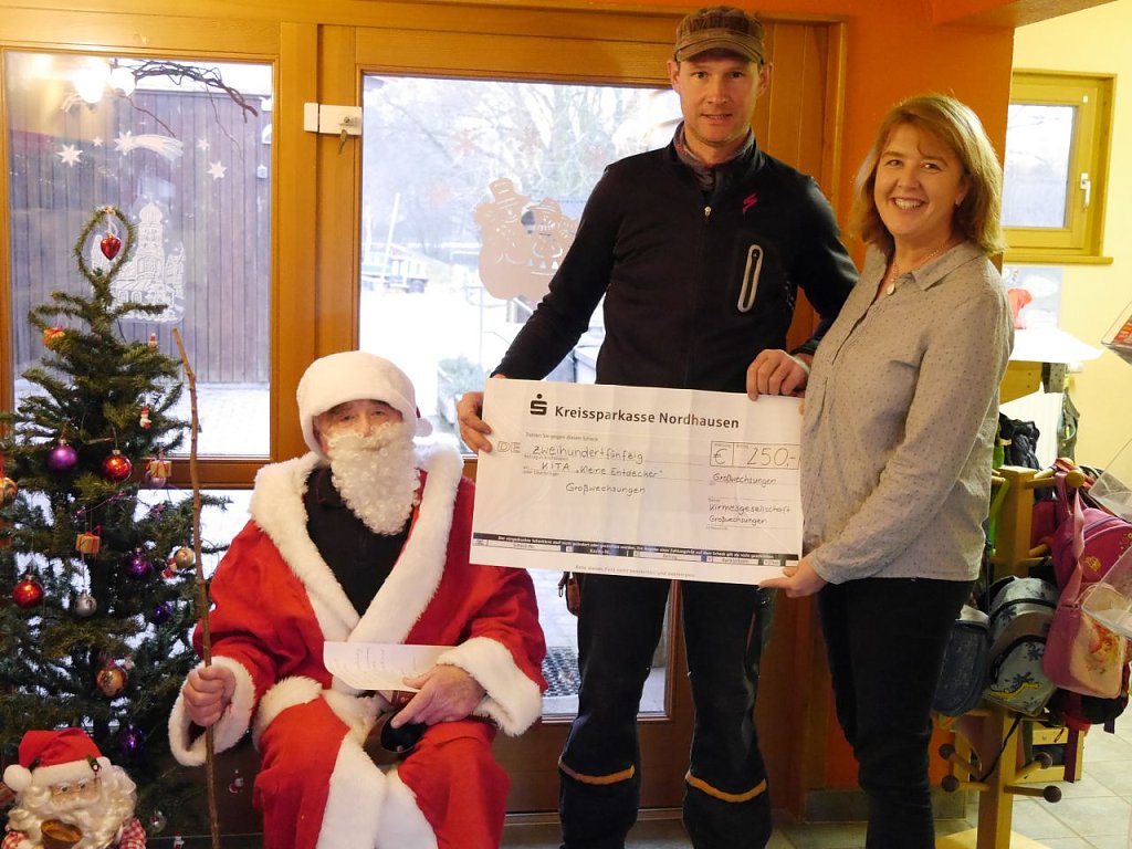 Überrascht wurden die Kinder und Erzieherinnen von Roy Schulze, der einen Scheck von 250,-€ an die Kita übergab. Die landwirtschaftlichen Firmen von Herrn Liedtke und Herrn Weinelt überbrachten ebenfalls Spenden für die Kita. Ein herzliches Dankeschön an die vielen kleinen und großen Spender.