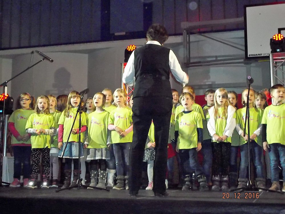 Nachdem ca. 200 Gäste Platz genommen hatten, konnte die Show beginnen. Mit lieblichem Gesang marschierten die 34 Musiküsschen ein und eröffneten die Darbietung. Ein buntes Programm mit verschiedenen Gedichten, Tänzen, selbst gespielten Musikstücken, Liedern und Theater entfachte bei den Besuchern Freude und Begeisterung.