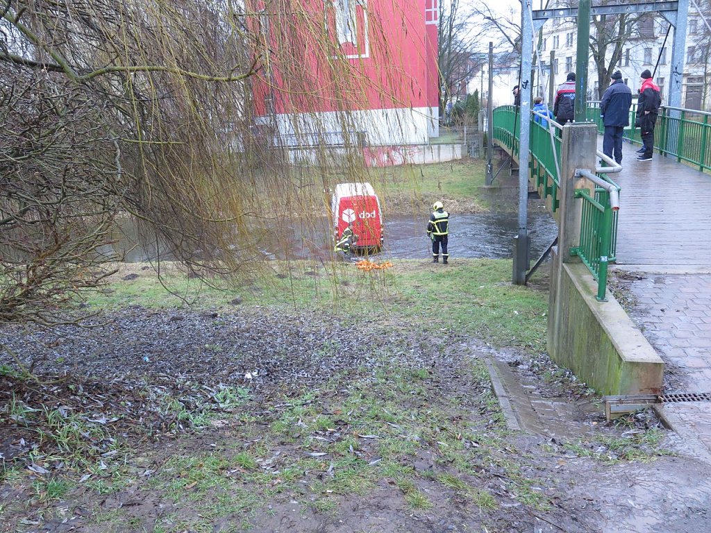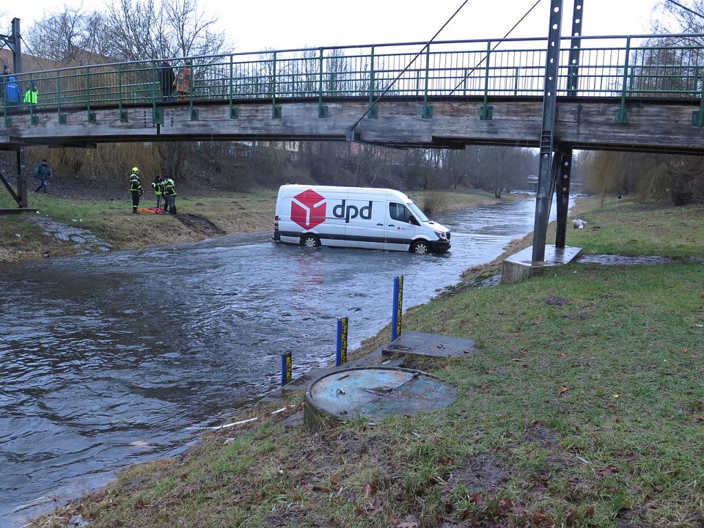 Das hatten die wenigsten der Einsatzkräfte schon einmal gesehen. Mitten in der Zorge in Nordhausen steht der Transporter eines Paketdienstes. Nahezu unversehrt strömt das Wasser um dessen Räder...