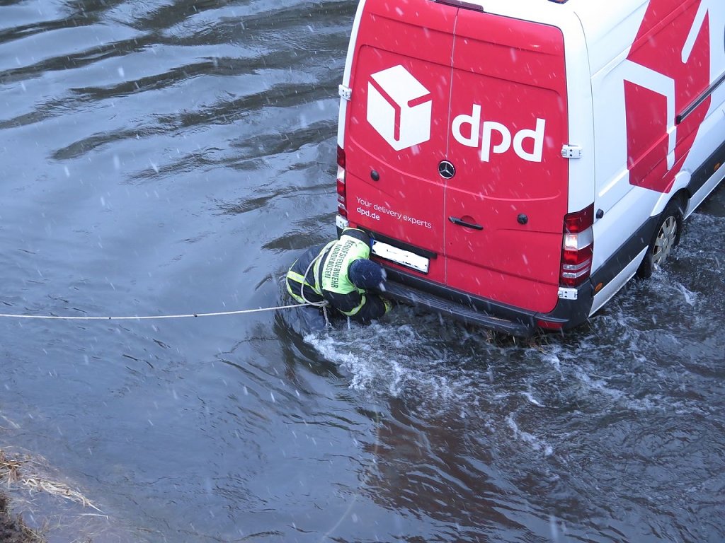 Das ging schief und so rückte die Nordhäuser Berufsfeuerwehr mit ihrer Bergetechnik an. Nach einigen Minuten waren Fahrzeug und Fahrer aus den Fluten gezogen. Glücklicherweise ist dem Fahrer nicht passiert, nur aufwärmen sollte er sich schnellstens.