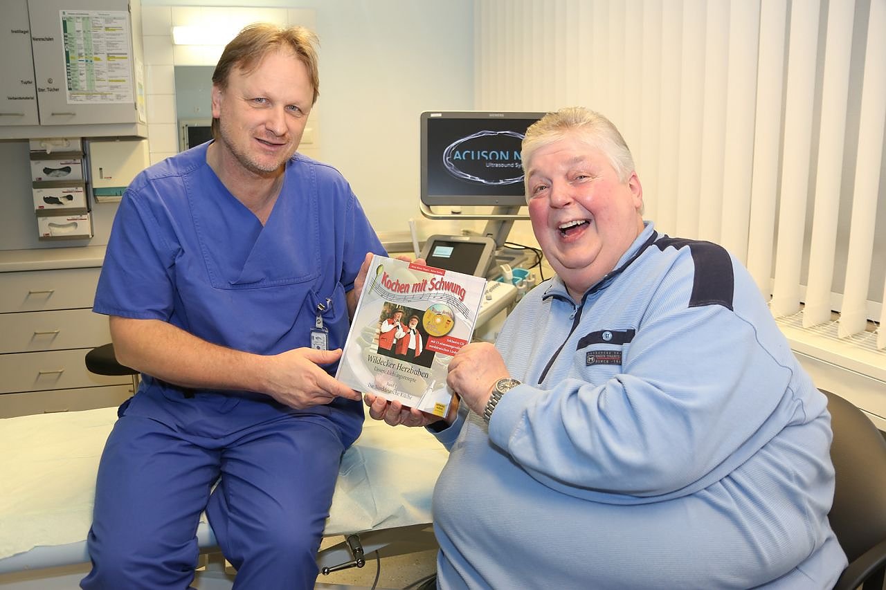 Bei seinem Besuch in Weende kurz vor Weihnachten hatte Schwalm auch ein Geschenk für die Urologen dabei: Ein Kochbuch der Wildecker Herzbuben mit einer passenden Musik-CD.